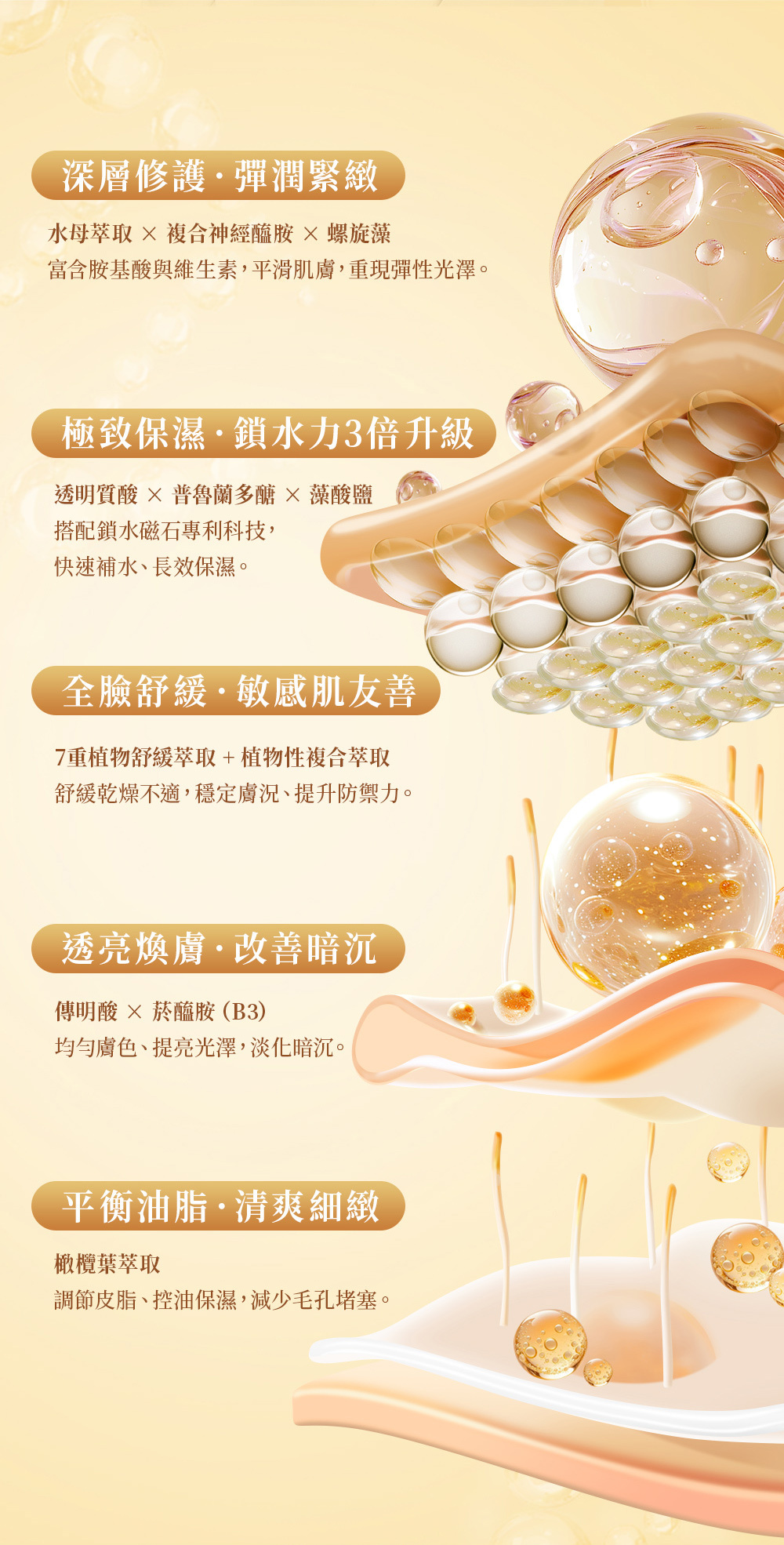 ・深層修護,彈力緊緻|水母萃取 + Spirulina + 複合神經醯胺